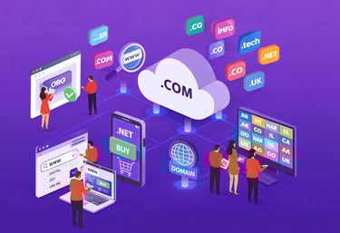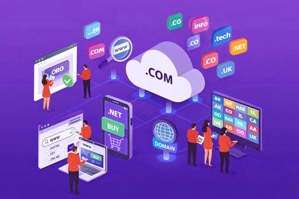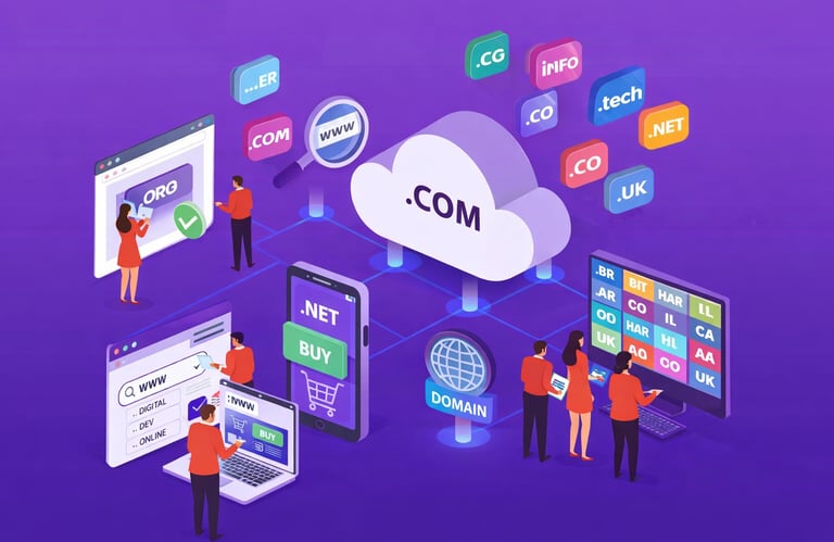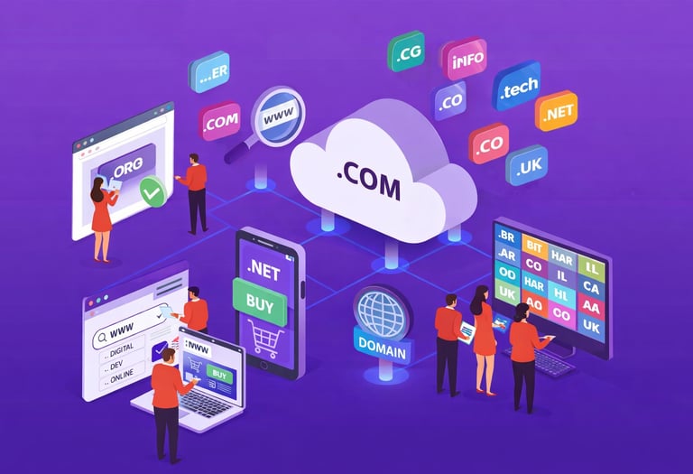 O domínio é o nome do seu site — é o que as pessoas digitam no navegador para te encontrar, como exemplo.com.
